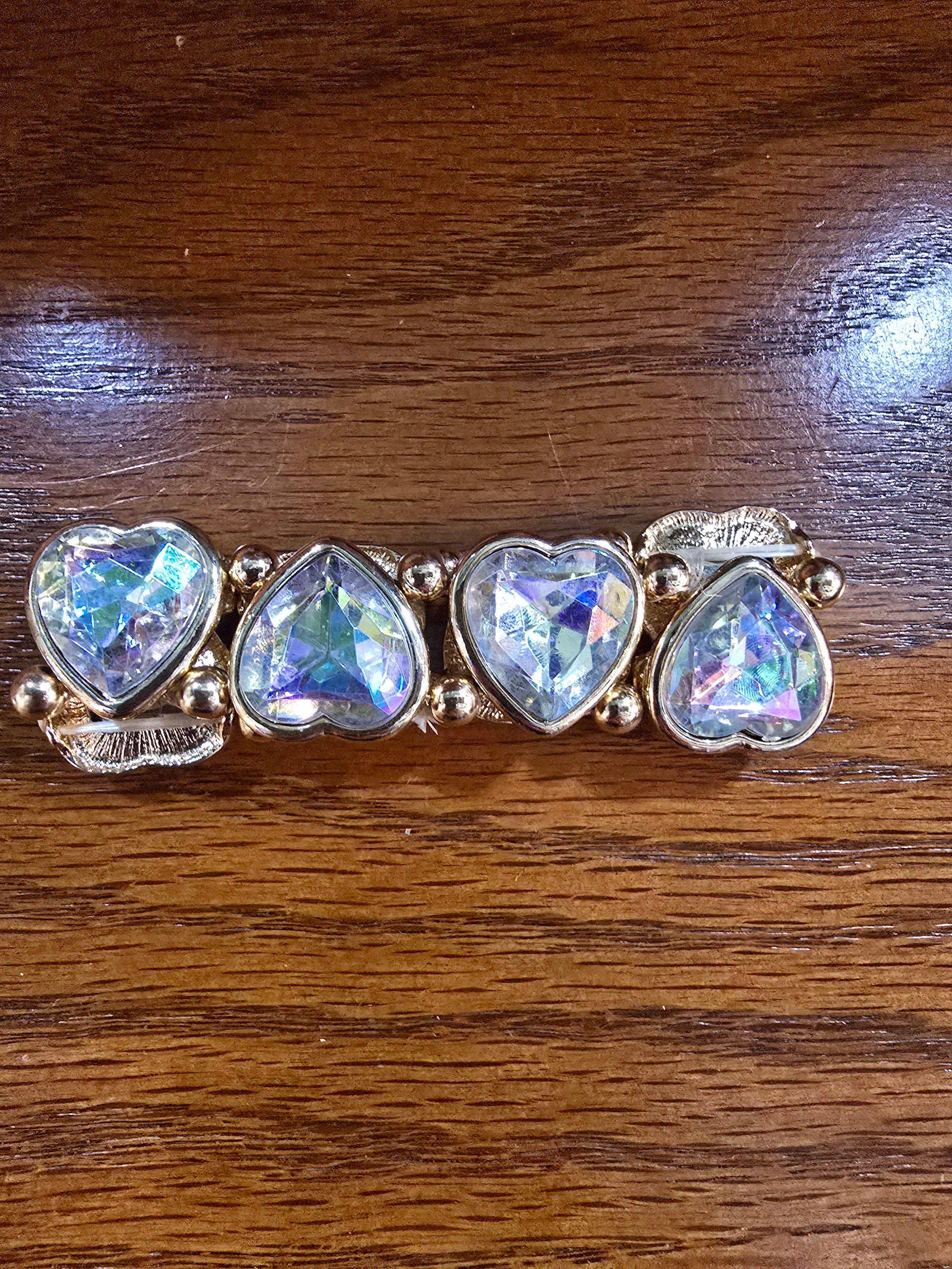 Indulge in opulence with our Gold Iridescent Heart bracelet. The stretch design allows for effortless wear, while the iridescent heart, fully encircled in gold, adds a touch of ethereal beauty. Elevate any outfit with this sophisticated and exclusive bracelet.