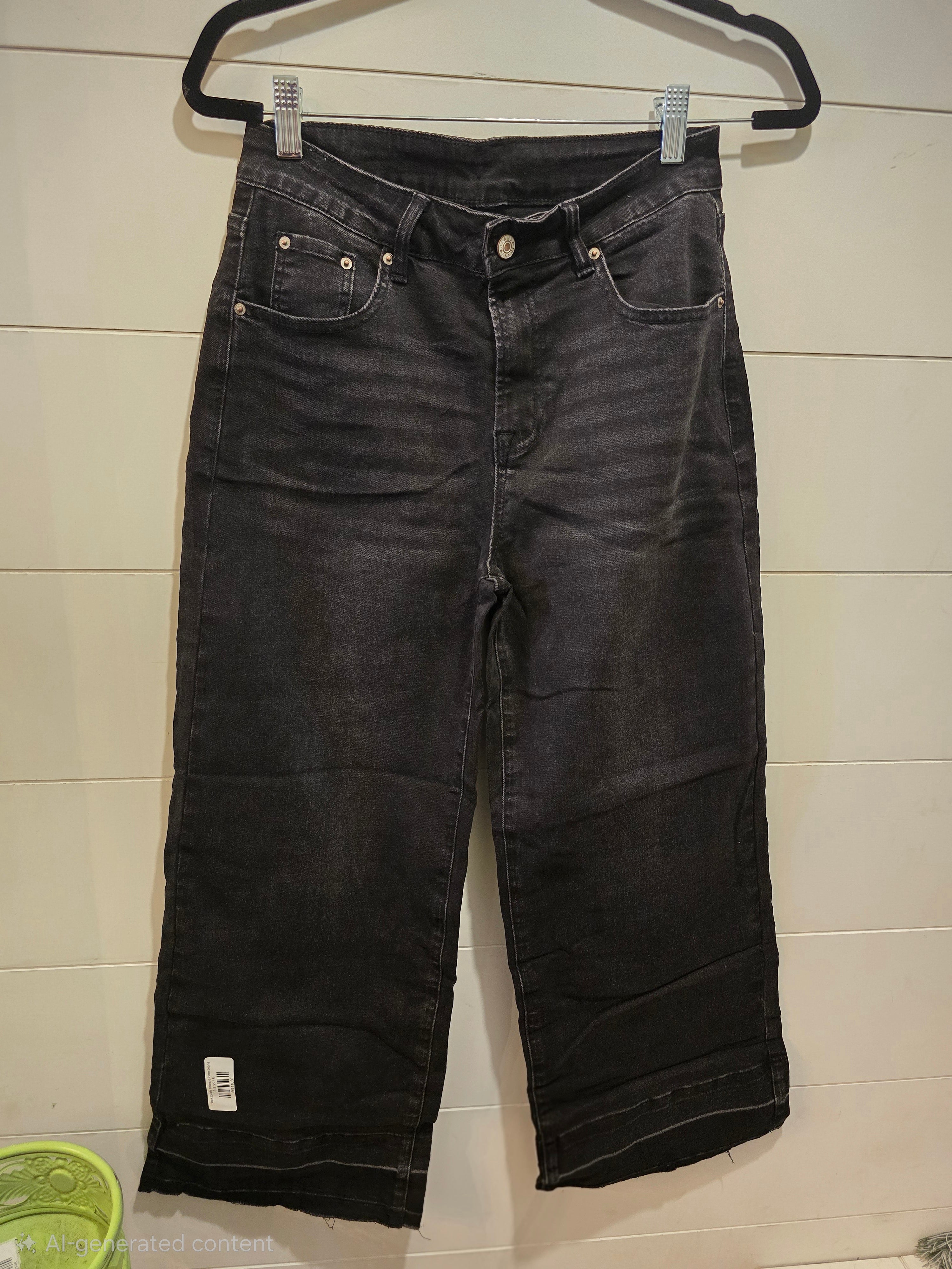 "Set your style free with our Black Dusky Release Hem Jeans. These wide leg jeans have a dusky release hem for a unique touch, along with pockets and belt loops for convenience. Embrace the dark allure of black while still staying comfortable and stylish."