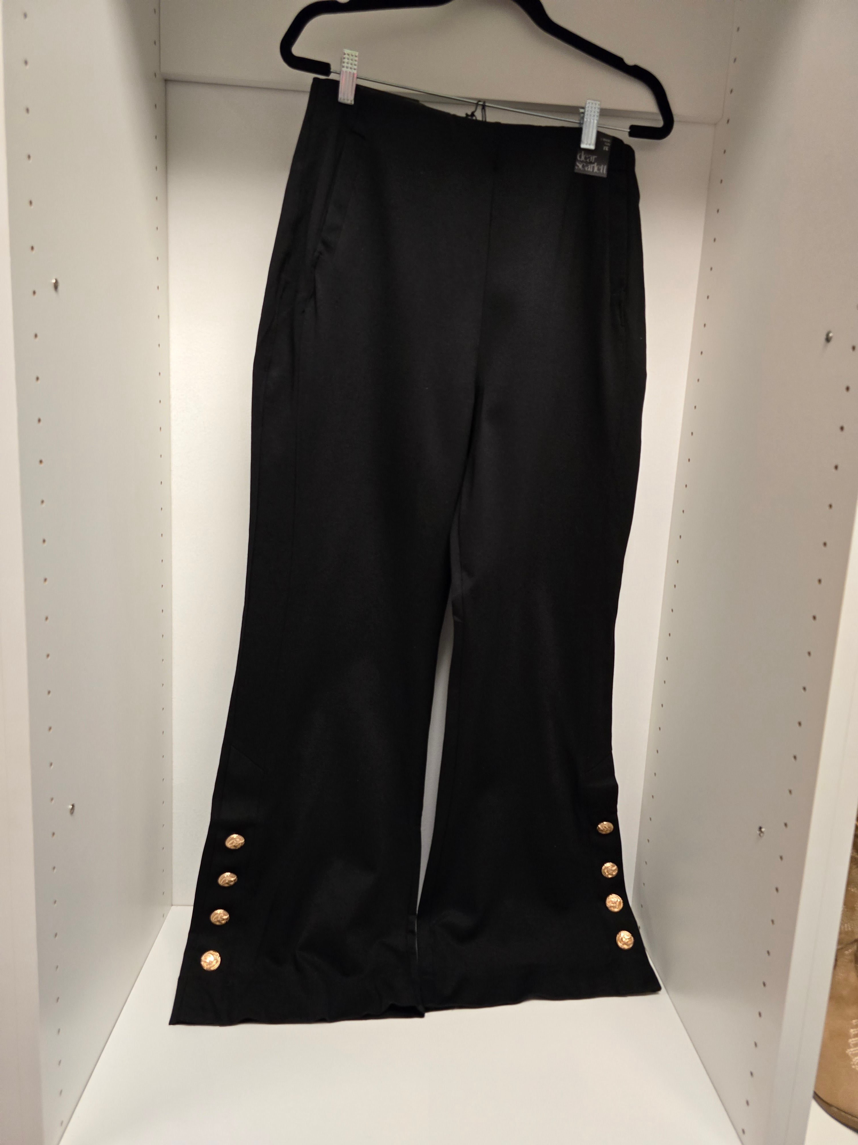 Professional and stylish, the Dear Scarlet Black Dress Slacks are designed for both comfort and sophistication. With a pull on design, two pockets, and wide legs, these slacks are perfect for any occasion. The four gold buttons on the bottom of each leg add a touch of elegance to complete the look.