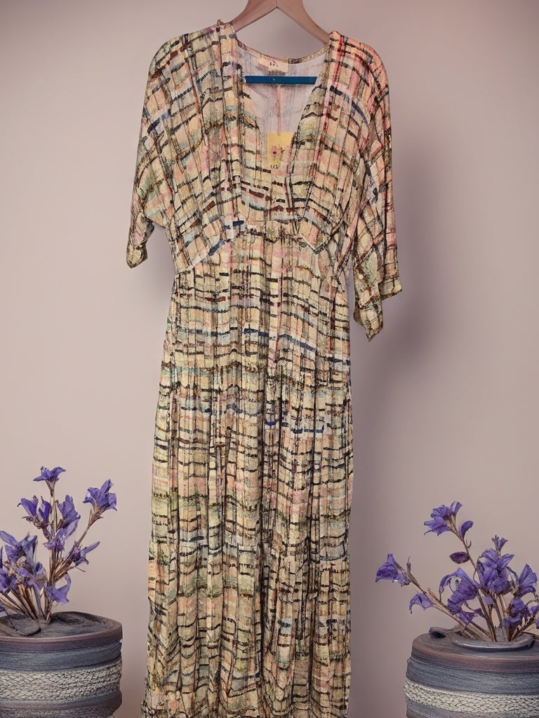 Introducing the Multi Print Maxi Dress—where comfort meets sultry! With its stretchy waist (no food baby left behind!), chic V-neck, and three-quarter sleeves, you’ll be ready to twirl into any soirée or Netflix binge. Plus, that tiered skirt is perfect for channeling your inner diva while keeping it comfy. Snap, pull, and strut your stuff in style!