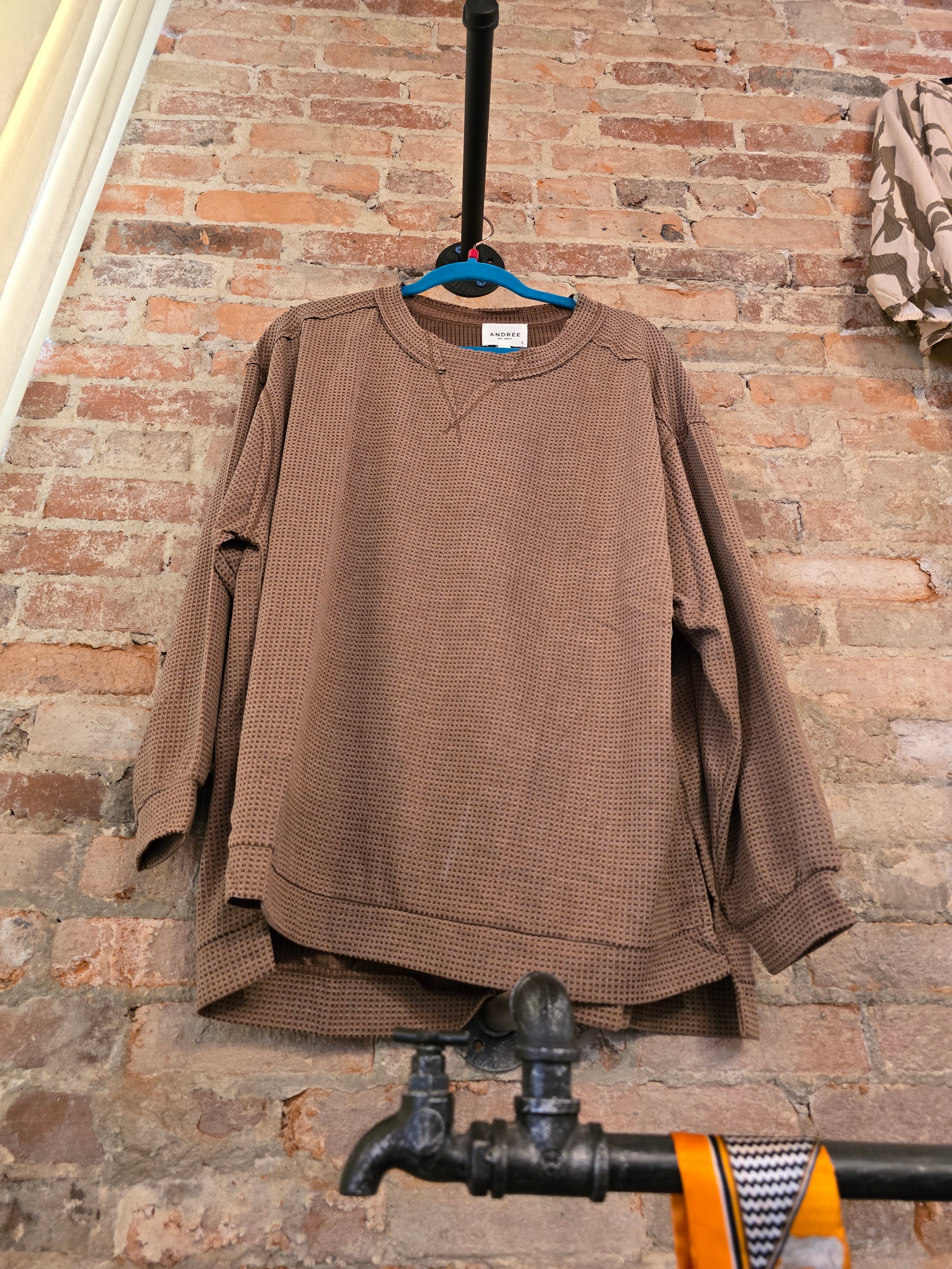 Indulge in style with our Chocolate Waffle Knit Top! This lightweight top features a rich chocolate color, long sleeves, and a rounded collar for a sophisticated look. The hi-lo waist and side slits add a touch of playfulness. Perfect for any occasion, this top will be your go-to for effortless style.