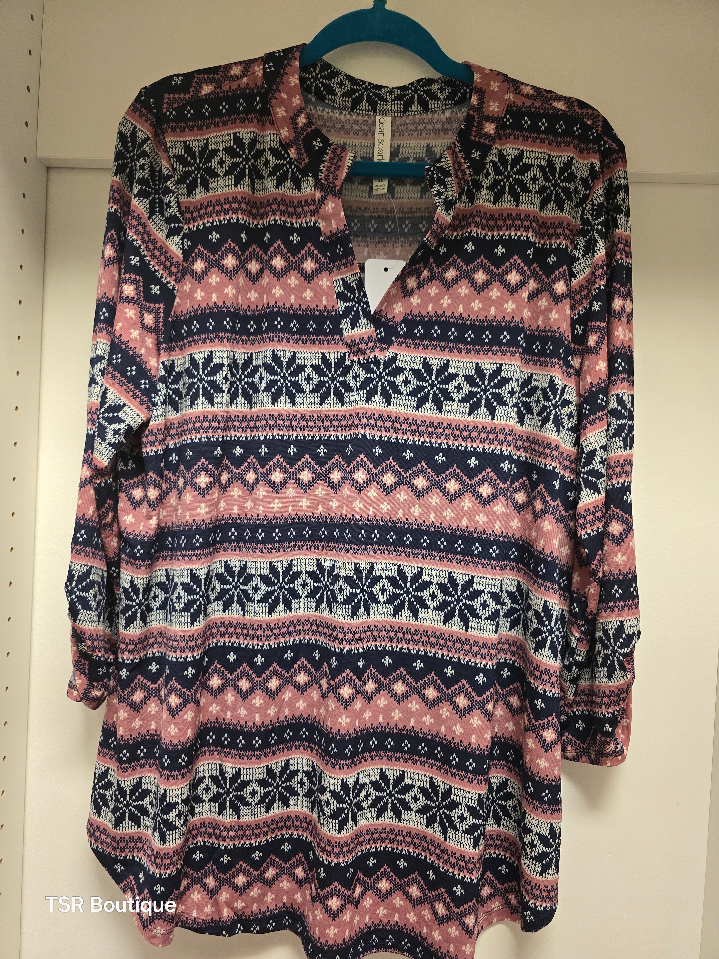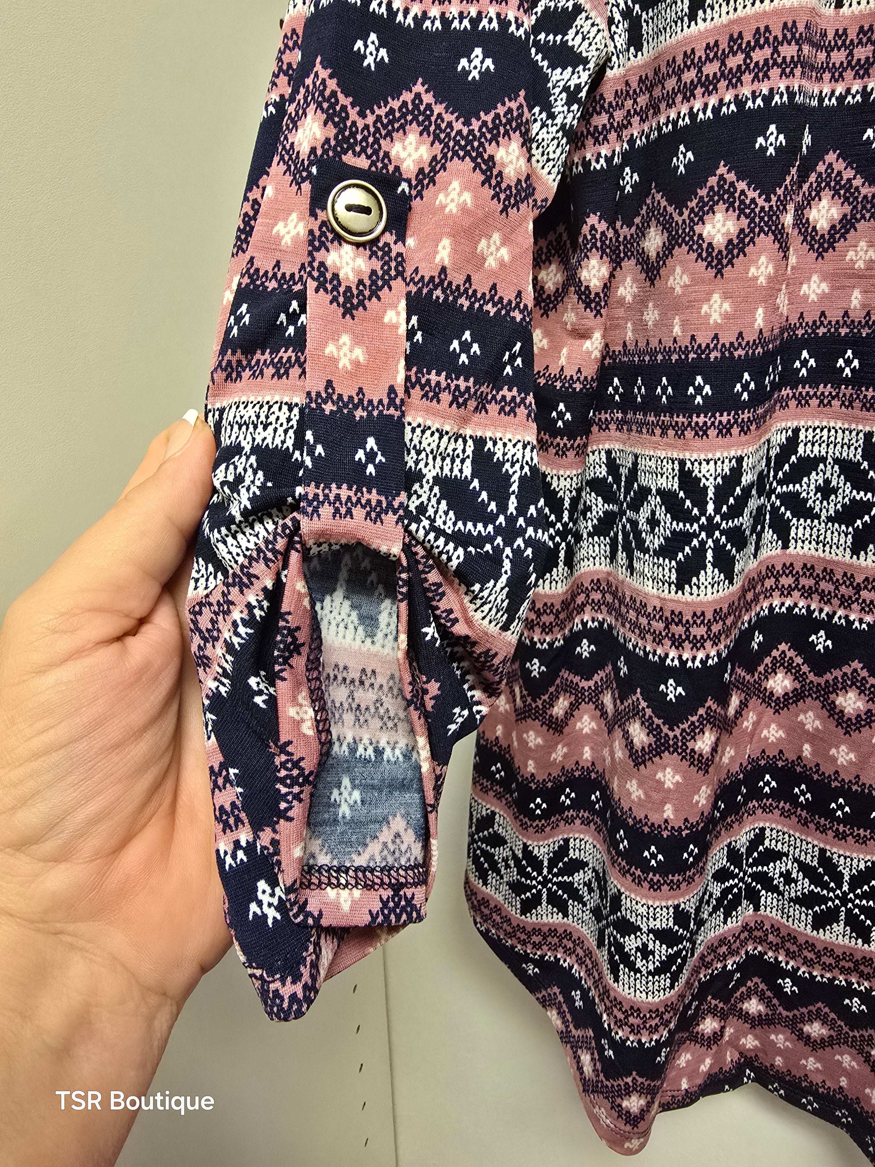 Meet the Dear Scarlet Navy Multi Top—your new BFF in fashion! With long sleeves for those "chilly-ish" days and a V-neck that says, “Hello, collarbone!” you’ll be turning heads in no time. Plus, those button sleeves? They’ve got your back if you decide to roll up your sleeves and tackle the world (or just your couch). Lightweight and long-waisted, this top dances between comfy and chic—perfect for brunch or binge-watching. Fashion goals? Check!