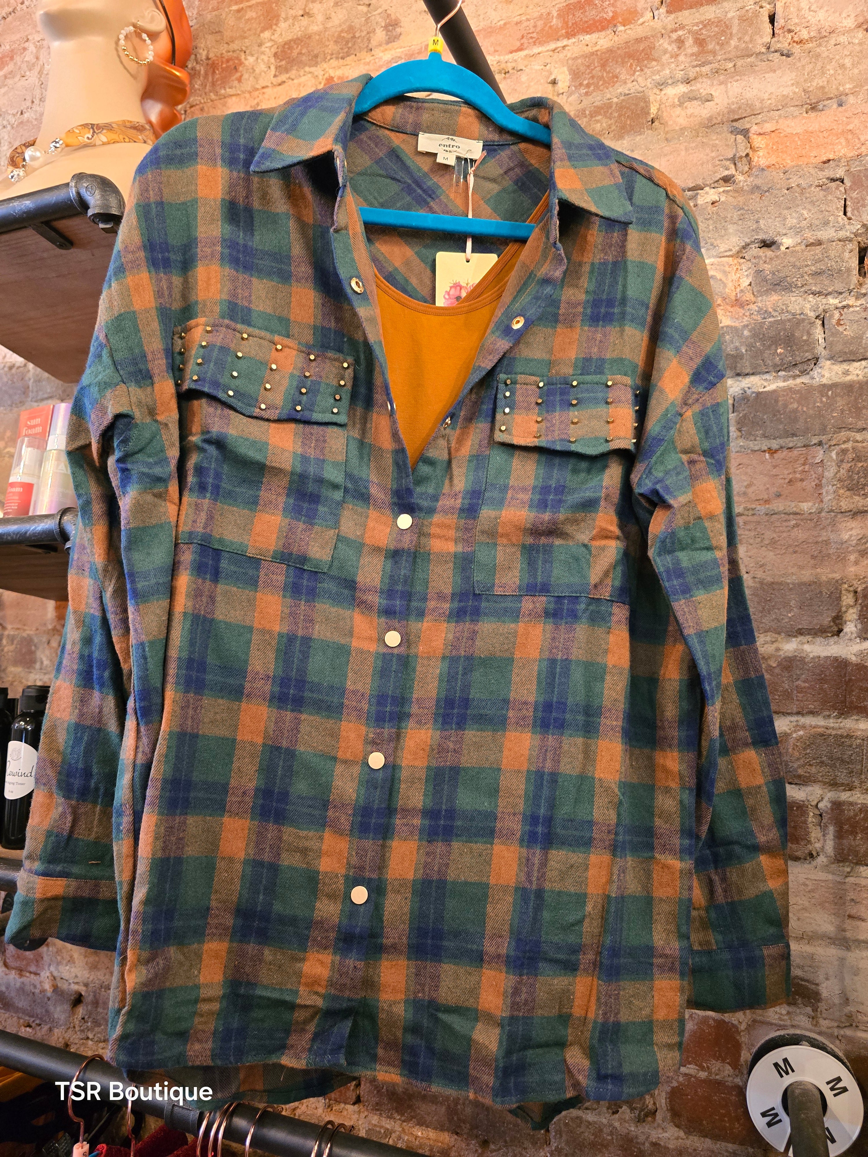 Navy & Gold Plaid Flannel Top