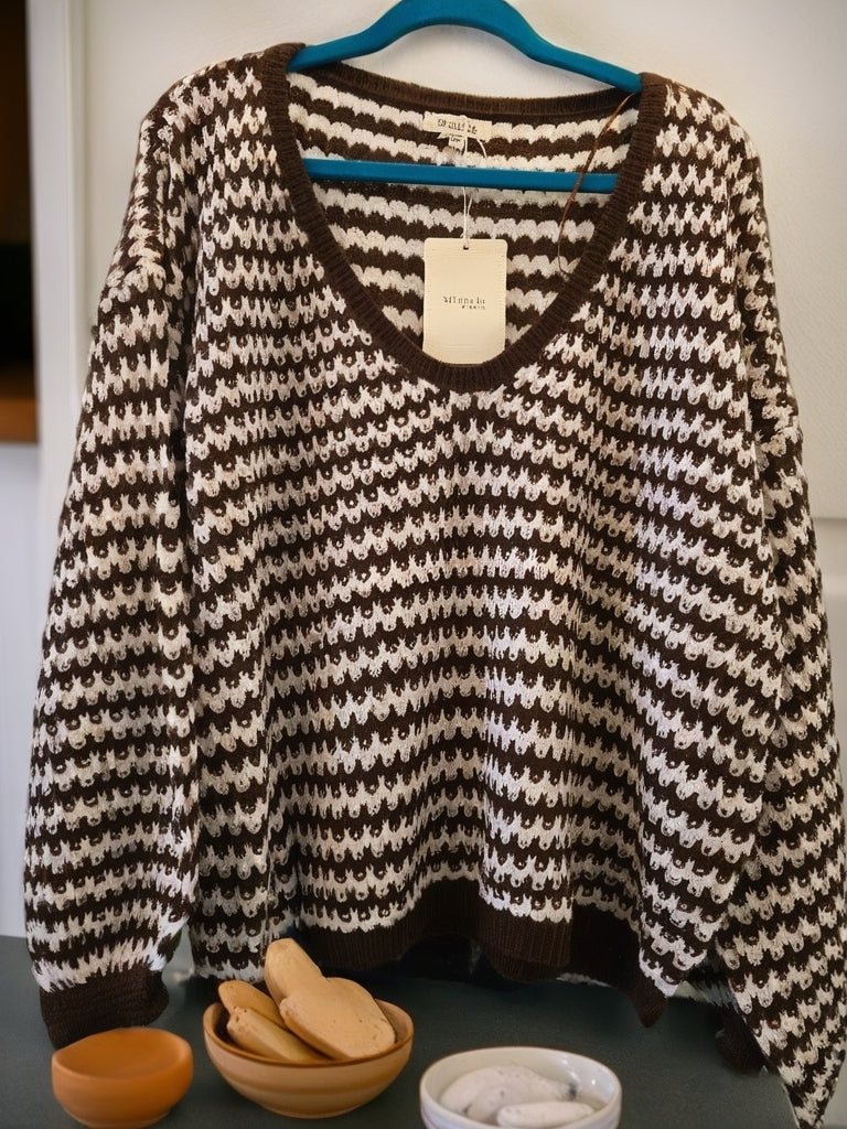 Brown and White Loop Sweater