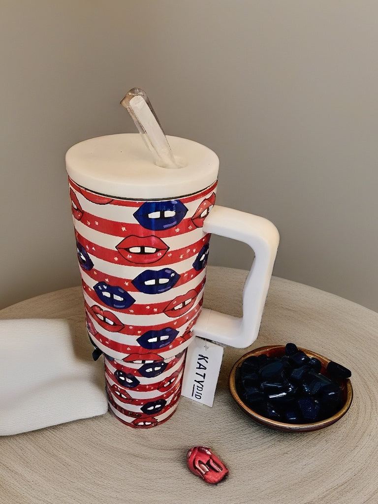 Meet the Kiss the Flag Tumbler—your patriotic hydration sidekick! Decked out in red, white, and blue with kissy lips to spice up your sip, this gem sports a white handle for a comfy grip. Complete with a screw-on lid and straw, it’s perfect for quenching thirst while showing off your American spirit. Cheers to freedom, one gulp at a time!
